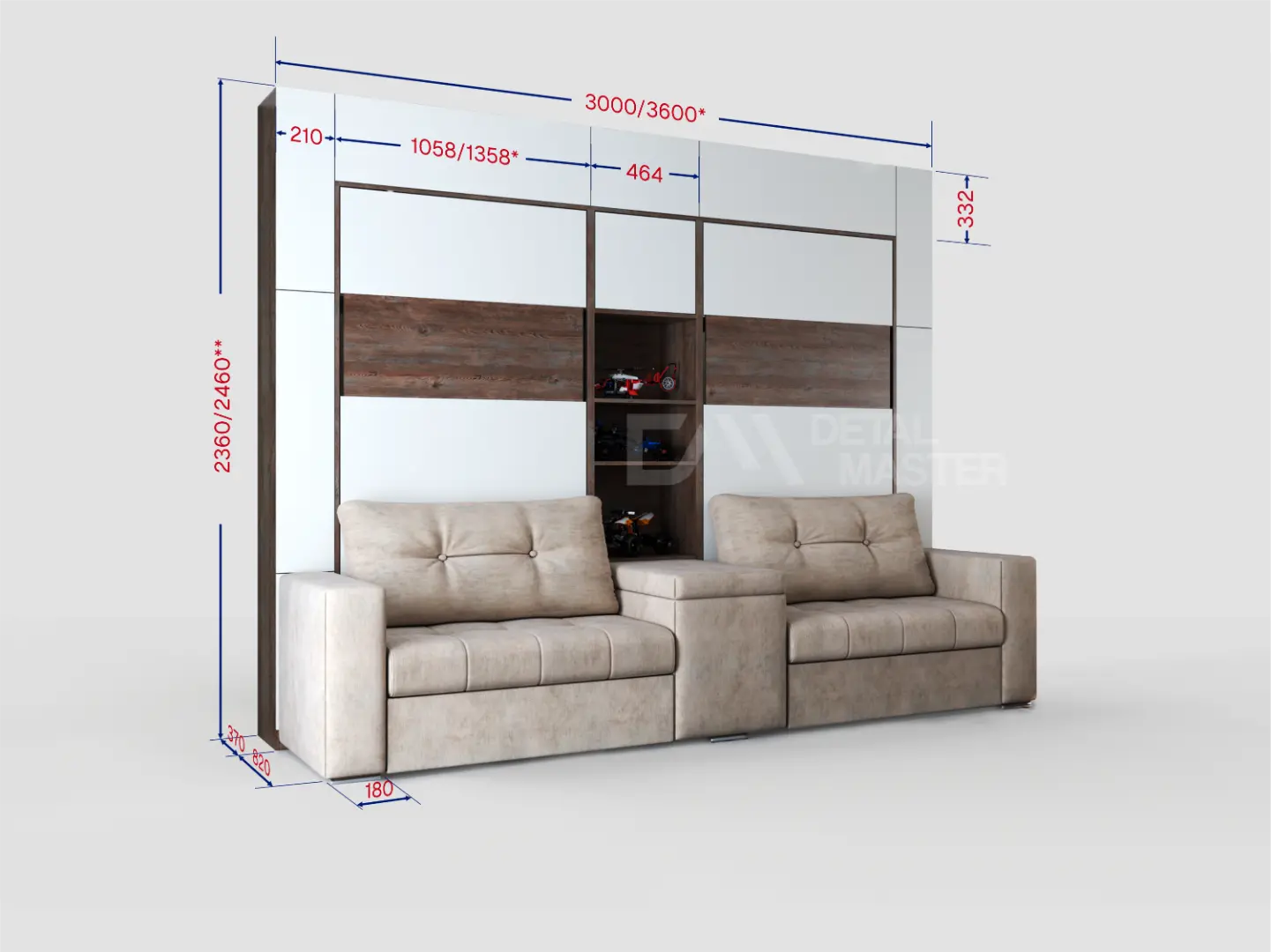 Дополнительные опции, такие как: освещение, зарядное устройство, розетки, мягкое изголовье, матрас, мягкий борт - не входят в стоимость шкаф-кровати "Twin 2.0". Вы всегда можете самостоятельно их добавить в опциях или написать менеджеру при оформлении заказа.
